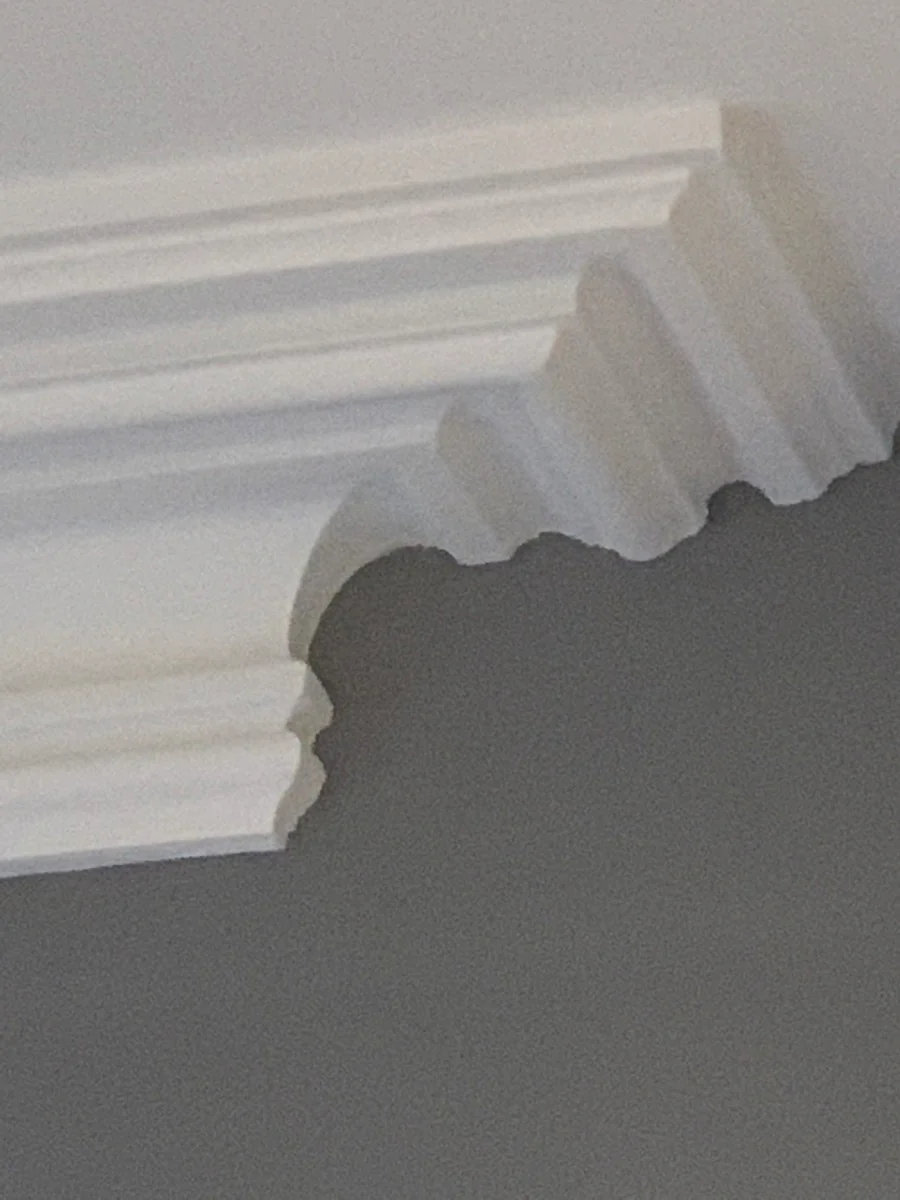 Suggested for 9 to 12 feet ceilings. Handcrafted premium plaster coving easy fit, light can be install by one person. Fine quality buy now at special coving prices. Benefits are: fine crafted, water/fire resistance, allows flexibility to uneven ceiling and wall, will never crack or shrink, invisible joins, easy cut mitres, and will finish/fit nicely to any uneven ceiling.