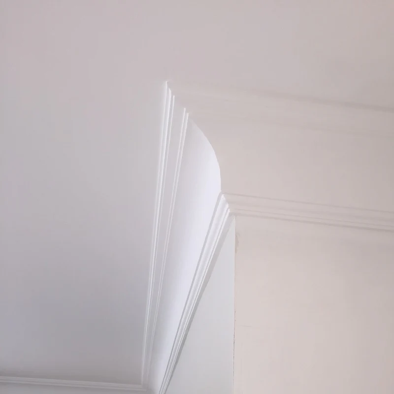 Suggested for 9 to 14 feet ceilings. Handcrafted premium plaster coving easy fit, light can be install by one person. Fine quality buy now at special coving prices. Benefits are: fine crafted, water/fire resistance, allows flexibility to uneven ceiling and wall, will never crack or shrink, invisible joins, easy cut mitres, and will finish/fit nicely to any uneven ceiling.